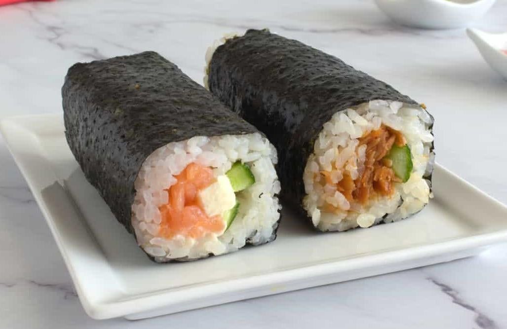 丸太型の巻き寿司バージョンと、カットされたバージョンで。